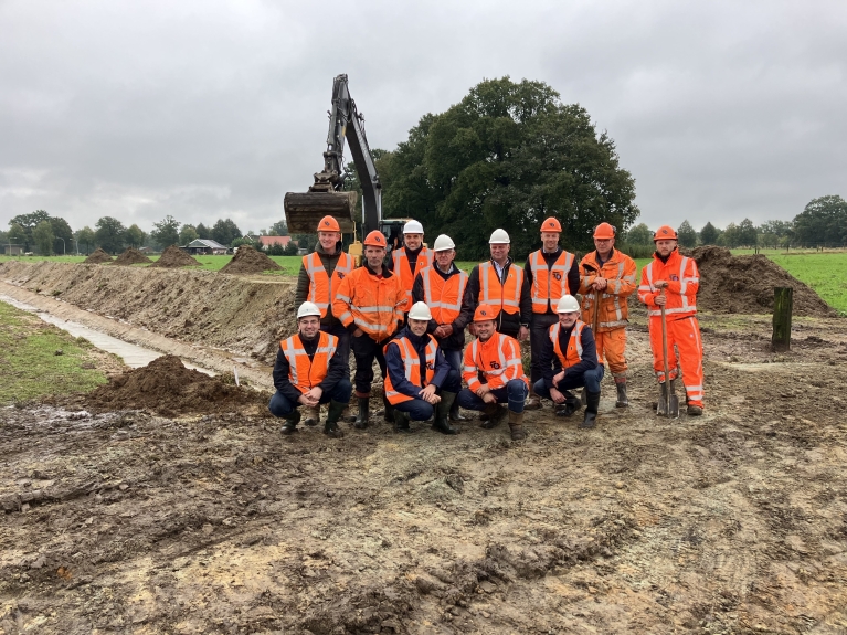 Wilbert Kobus (staand 2e van links) en Peter Schrijver (staand 4e van rechts) met collega's van het waterschap en uitvoerders Negam